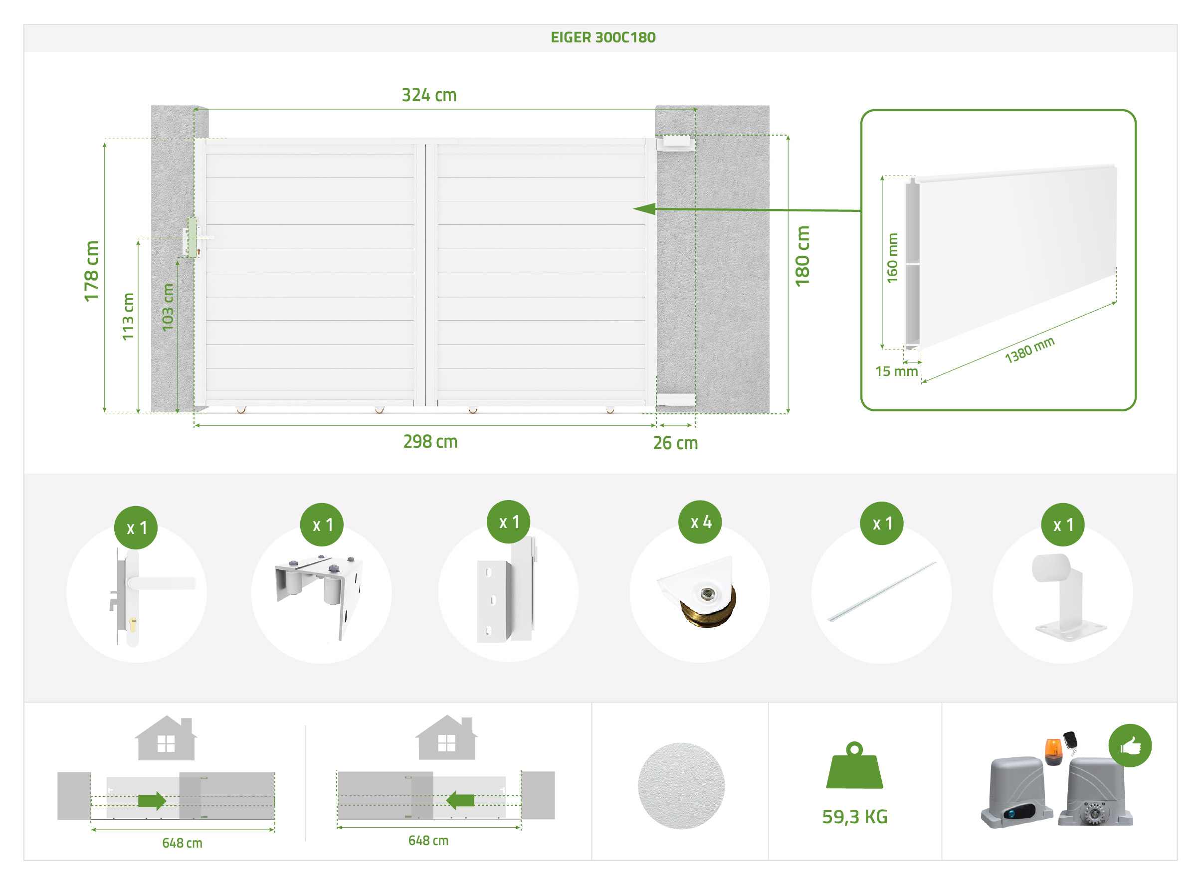 EIGER 3 m Schiebetor, 180 cm hoch + RANGER C300 Motor 1358 €   1259 €